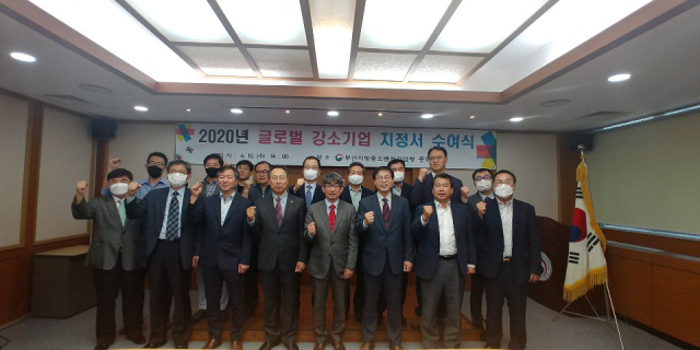 부산지방중소벤처기업청(이하 부산중기청)은 10일 부산중기청 2층 중회의실에서 ‘2020년도 글로벌강소기업 지정서 수여식을 개최했다. 글로벌강소기업은 직전년도 매출액이 100억 원에서 1000억 원이고 수출이 500만 달러 이상인 중소기업이다. 벤처, 이노비즈 등 혁신형 기업은 매출액 50억 원에서 1000억 원 사이 수출액 100만 달러 이상이다.