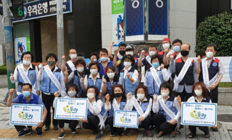 부산 동래구 온천1동(동장 서충훈)은 한국자유총연맹 온천1동분회(회장 배용수) 주관으로 지난 17일 온천1동 우리은행 앞 일원에서 회원 및 구지회 회원 등 30여명이 모여 지역경제에 활력을 도모하기 위한 ‘동消동樂’(동래에서 소비하고 동래에서 즐기자) 홍보 캠페인을 실시했다.