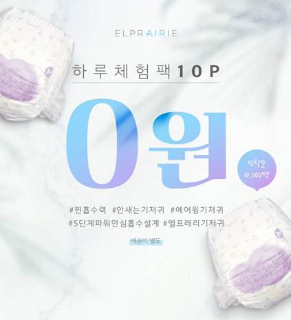 엘프레리, 에어윙 기저귀 선착순 1만 명 대상 0원딜 진행