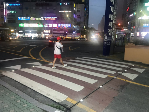 횡단보도 양옆에 LED 유도등을 심어 운전자 시인성 확보