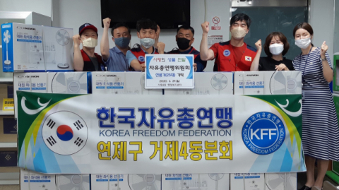 연제구 거제4동(동장 김윤신)은 자유총연맹위원회(회장 최용우) 주관으로 지난 29일 코로나19로 힘든 취약계층을 위해 선풍기 25대(150만 원 상당)를 기탁받았다.