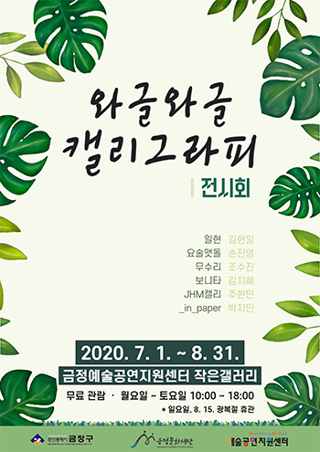 금정구(구청장 정미영) 금정문화재단은 오는 8월 31일까지 금정예술공연지원센터 작은갤러리에서 ‘와글와글 캘리그라피 전시회’를 개최한다.