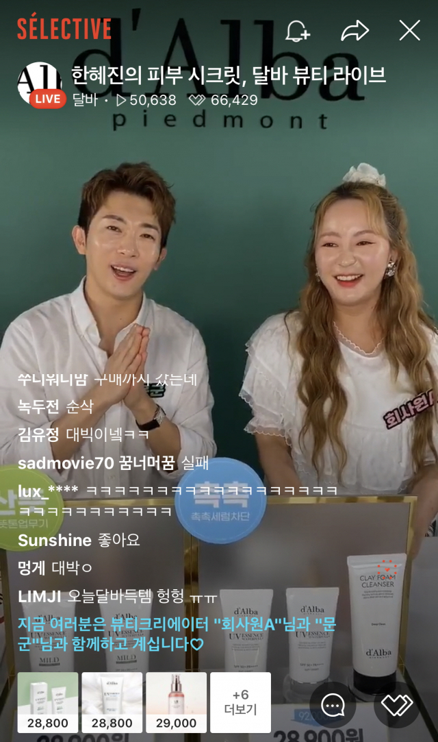 저녁 9시부터 10시까지 진행된 '달바X네이버 셀렉티브 라이브' 방송은 120만 구독자를 보유한 뷰티 크리에이터 회사원A와 함께 신제품 마일드 선크림을 공식 론칭해 누적 조회수 6만에 육박하는 큰 호응을 받으며 성공적으로 마무리했다.
