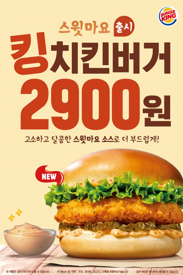 버거킹, 신규 메뉴 '스윗마요 킹치킨버거' 선보여