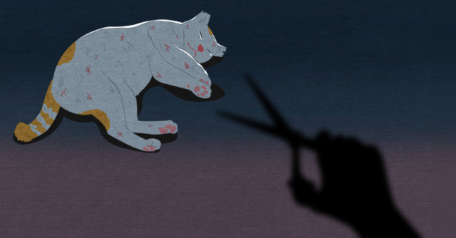 당시 고양이는 초록색 줄에 목이 묶인 상태로 앞발이 들린 채 담벼락에 매달려 있었고, 뒷발과 꼬리는 땅에 붙어 있어 마치 앉은 자세로 숨져 있었다. 해당 고양이는 평소 새끼 3마리와 함께 주택가 일대를 돌아다니던 길고양이로 추정된다.