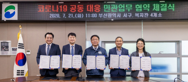 부산 서구(구청장 공한수)는 21일 서구청 신관 중회의실에서 20일부터 운영을 재개한 4개 복지관(서구종합사회복지관, 부산기독교종합사회복지관, 부민노인복지관, 서구노인복지관)과 ‘코로나19 공동대응을 위한 민·관 업무 협약’을 체결했다.