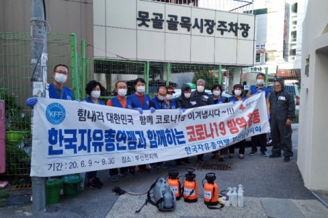 한국자유총연맹 대연5동분회(회장 김한수)에서는 17일 회원 20여명이 참여하여 부산 남구 못골골목시장 일대를 돌며 코로나19 극복을 위한 방역활동을 실시하였다.