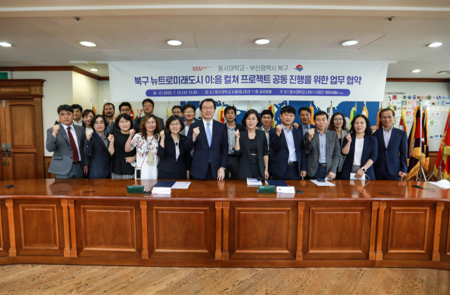동서대학교 사회맞춤형 산학협력 선도대학(LINC+·링크플러스) 육성사업단은 지난 22일 동서대 뉴밀레니엄관에서 부산 북구청과 ‘북구 뉴트로 미래도시 이:음 컬쳐 프로젝트’ 공동 진행을 위한 협약을 체결했다.