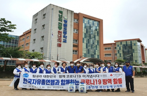 부산 동래구 명륜동(동장 이경아)은 지난 25일 한국자유총연맹 명륜동분회(회장 임천식)와 합동으로 회원 등 20여명이 참석한 가운데 학생 및 아동들이 안전하게 생활할 수 있도록 명륜초등학교, 명륜 학원거리, 명륜아동센터 등에서 ‘코로나19 확산방지를 위한 방역 활동’을 실시했다.
