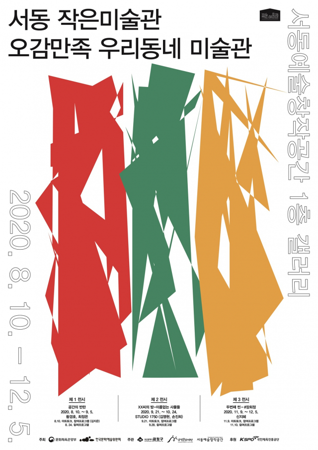 ‘오감만족 우리동네 미술관’ 전시회의 시작은 황경호, 최정은 작가가 준비한 설치미술 전시 ‘공간의 반란’(8.10.~9.5.)이다. 황경호, 최정은 작가는 공간 이해를 주제로 활발하게 작품 활동 중인 설치미술 작가들이다. 두 작가는 다수의 공연에서 무대미술로 참여한 경험을 살려 이번 전시에서도 관객과의 소통을 중시했다.