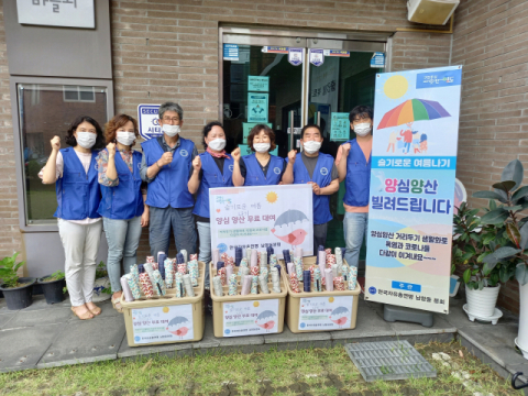 오세득 분회장은 “코로나19와 극심한 폭염이 예상되는 가운데 양산쓰기의 생활화로 자연스러운 거리두기를 실천하여 온열질환 및 감염병 예방까지 일석이조의 효과를 거두기를 바란다.”며 “관내 취약계층은 폭염 시 충분한 수분섭취 및 야외활동 자제, 양산쓰기 등을 통해 여름철 건강관리에 유의해 줄 것”을 당부하였다.