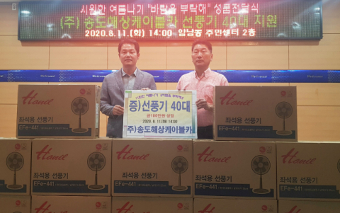 ㈜송도해상케이블카(대표 최효섭)는 관내 취약계층 주민들이 무더위 속에서도 건강하게 생활할 수 있도록 11일 선풍기 40대(180만 원 상당)를 부산 서구 암남동 주민센터에 기탁했다.
