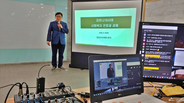 이어 최근 이슈가 되고 있는 “코로나19시대의 사회복지 전망과 과제” 주제를 중심으로 초의수 교수의 특강이 이어졌다. 실시간 방영된 유튜브 이용 웨비나에서는 참가자들의 다양한 공감적 의견들이 개진되기도 했다.