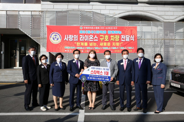 국제라이온스협회 355-A(부산)지구(총재 주형규)는 지난 24일 부산 동구 라이온스 부산지구 회관에서 최근 폭우로 인해 차량 5대가 손실된 부산 동구 자성대복지관에 2500만 원 상당의 구호 차량(스타렉스)을 기증했다.