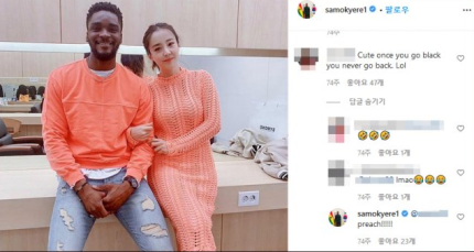 이 사진을 본 한 외국인으로 보이는 누리꾼은 "Cute once you go black, you never go back. Lol"(귀엽네. 흑인에게 한번 가면 다시 돌아오지 못한다)이라고 댓글을 남겼다. 이에 샘 오취리는 대댓글에 'preach'라는 반응을 보였다.