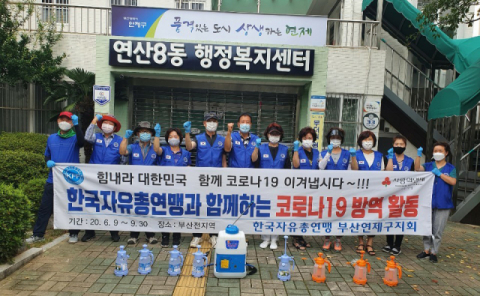연제구 연산8동(동장 김상수)은 한국자유총연맹 연산8동 분회(회장 황경환) 주관으로 지난 22일 회원 15명이 참여한 가운데 사회적 거리두기 2단계 격상에 따른 코로나19 확산 방지 및 청결한 마을 조성을 위해 과정공원 등 다중이용시설 및 상습 불결지를 중심으로 방역과 환경정비 활동을 함께 펼쳤다.