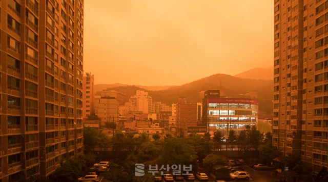 오늘 아침 부산 하늘, 주황색 물든 까닭…불길한 징조? 기상 이변?