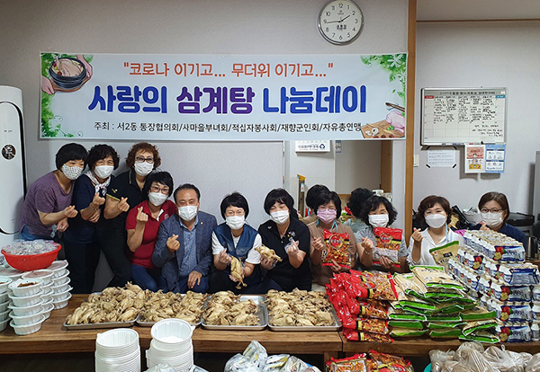 송성옥 서2동 통장연합회장은 “매년 여름 어르신을 모시고 삼계탕을 대접하곤 했는데 올해는 코로나19 예방을 위해 포장음식으로 삼계탕을 준비했다”며 “영양가득 삼계탕 한 그릇이 어르신들의 몸과 마음을 든든하게 채워주길 바란다.”고 말했다.