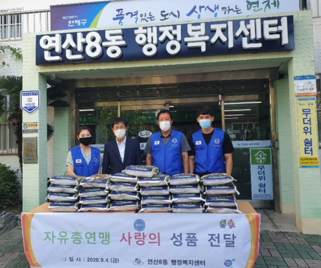 연제구 연산8동(동장 김상수)은 한국자유총연맹 연산8동 분회(회장 황경환)로부터 지난 4일 어려운 이웃 지원을 위한 백미 10kg 25포(75만 원 상당)를 전달받았다.