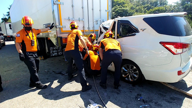 20일 오전 11시 30분께 부산 금정구 회동동 회동교차로 정관 방면 300m 지점에서 승합차 투리스모가 편도 4차로 우측 갓길에 주차된 9t 트럭 뒷 부분을 들이받았다. 이 사고로 승합차 운전자 A(56) 씨가 현장에서 숨졌다. 승합차 안에 동승자는 없었던 것으로 확인됐다.