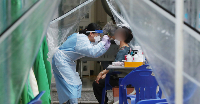 부산지역 코로나19 신규 확진자가 3명 발생한 24일 부산진구보건소 선별진료소를 찾은 시민이 검사를 받고 있다. 이날 확진자가 추가되면서 부산의 누적 확진자는 402명이 됐다. 정대현 기자 jhyun@