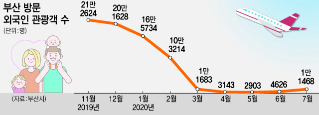 코로나19의 여파로 여름철 본격 관광 성수기가 시작된 올 7월에도 부산을 찾은 외국인 관광객이 95% 가까이 줄었다. 하지만 부산 관광시장의 ‘큰손’인 일본이 단계적으로 입국제한 조치를 완화한다면 실적이 점차 개선되지 않을까 하는 기대도 나온다.