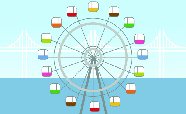 대관람차는 바퀴 모양의 둘레에 여러 명이 앉을 수 있는 박스를 많이 매달아 멀리 볼 수 있게 만든 회전식 놀이기구다. 다양한 놀이시설이 가득한 유원지에 우뚝 솟아 그곳의 상징물 구실을 한다. 영국 수도 런던을 관광했던 사람은 템스 강변에서 커다란 자전거 바퀴를 닮은 초대형 회전관람차 ‘런던아이(London Eye)’를 타봤거나 구경했을 게다.