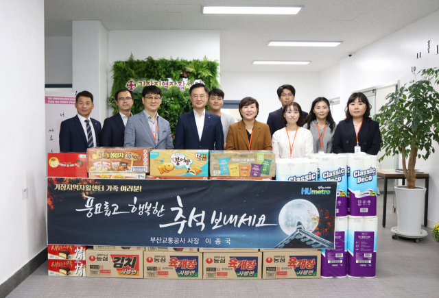 부산교통공사(사장 이종국)는 최근 코로나19의 어려운 시기에 추석 명절을 맞아 더욱 소외감을 느낄 지역 소외 계층을 위해 다양한 나눔 행사를 가졌다.