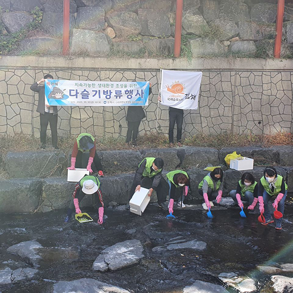 지속가능한 김해시, 슬로시티 이념 실천 및 생태환경 조성을 위한 다슬기 방류 행사 개최