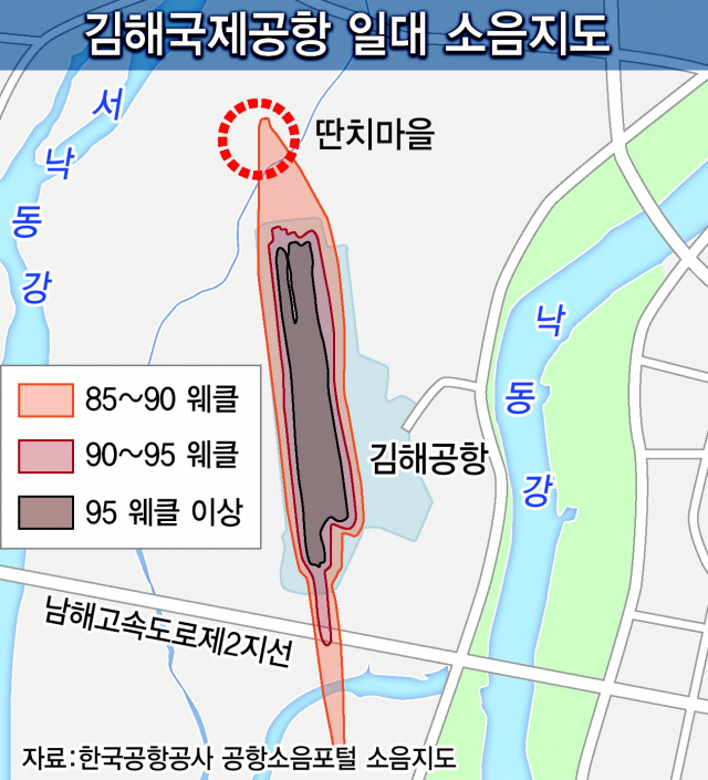 딴치마을 주민 147명이 정부를 상대로 소송한 건 항공기 소음 피해가 커지던 지난 2017년 12월. 이 마을은 2004년 10월부터 국토부가 고시한 소음대책지역 구분상 80웨클을 넘은 제3종 지역에 속했다. 하지만 이전 보상 청구나 토지 매수 청구를 인정하는 제1종 지역(95웨클 이상)과 달리, 딴치마을 등 제3종 지역에 대한 정부의 지원과 소음 저감 대책은 미미했다. 정부는 도서관 조성 등 주민지원사업만 일부 시행했다. 정부는 ‘소음 강도가 지나치게 높지 않다’며 저감 대책을 실시하지 않았고, ‘가덕신공항 건설’과 같은 근본 대책 마련은 아예 외면했다.