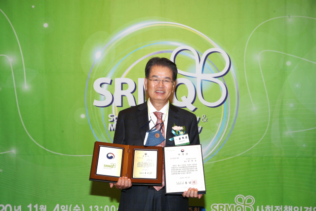사회적책임경영품질원은 4일 서울 여의도 전경련회관 컨퍼런스센터 그랜드볼룸에서 열린 ‘사회적책임경영품질 컨벤션 2020’에서 권 회장에게 부총리 겸 기획재정부 장관상으로 유공자포상 부문 ‘최고경영자 대상’을 시상했다. 사회적책임경영과 경영품질활동에 앞장서 우수한 성과를 거둔 기업과 기업인을 발굴·포상하기 위해 개최되는 이 행사는 기획재정부, 중소기업중앙회, 한국품질경영학회, 한국공기업학회가 후원한다.