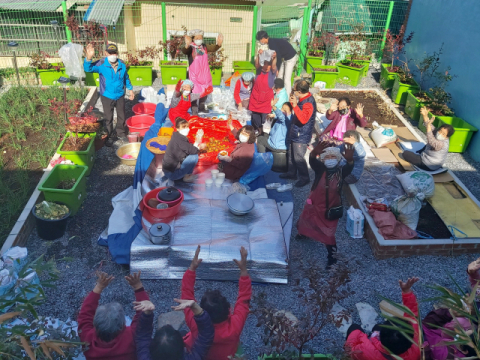 마을텃밭은 지난 9월 도시재생뉴딜사업으로 조성하여 마을 주민들이 함께 가꾸고 있으며, 이날 배추, 쪽파, 열무를 수확하여 김치겉절이를 담가 주민들과 나누었다.