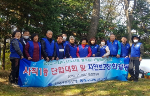 부산 동래구 사직1동(동장 윤민자)은 한국자유총연맹위원회 동래구지회 사직1동분회(회장 김원빈) 주관으로 지난 8일 금정산에서 자연보호 정화활동과 산불 예방 캠페인을 진행하였다.