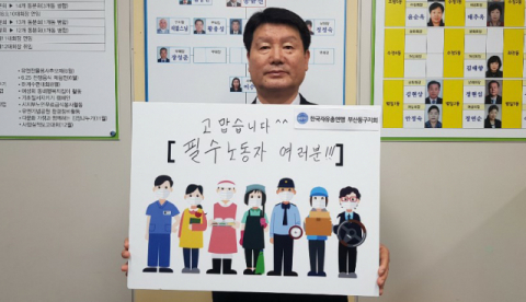송규진 한국자유총연맹 부산동구지회장은 지난 16일 ‘고맙습니다 필수노동자’ 캠페인에 동참했다.