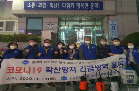 한국자유총연맹 사직1동분회, 코로나19 방지를 위한 방역 실시