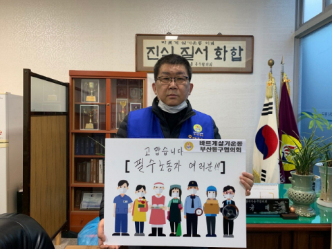 바르게살기운동 부산동구협의회 박규태 회장은 지난 23일 ‘고맙습니다 필수노동자’ 캠페인에 동참했다.