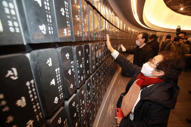 부산 국립일제강제동원 역사관에 희생자 135위 위패가 추가로 안치됐다. 9일 오후 국립일제강제동원역사관 위패관인 ‘기억의 터’에서 열린 안치식에서 유족들이 희생자들의 넋을 그리며 추모하고 있다. 김경현 기자 view@
