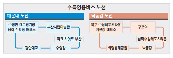 부산 바다 관광의 명물이 될 해상시티투어 ‘수륙양용버스’는 해운대와 광안리 일대를 잇는 ‘해운대 노선’과 낙동강을 중심으로 한 ‘낙동강 노선’으로 나눠 운행될 예정이다. 또 다른 해상관광 교통수단인 해상버스와 해상택시도 자갈치시장, 부산역, 오륙도 등 주요 관광 거점을 중심으로 운행된다.