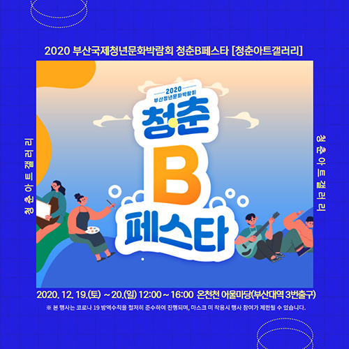 부산시가 주최하고 금정구와 금정문화재단이 주관하는 ‘청춘아트갤러리’는 청년들에게 진취적 예술 활동의 기회를 제공하고 부산의 청년문화를 활성화하는 데 목적을 두고 있다.