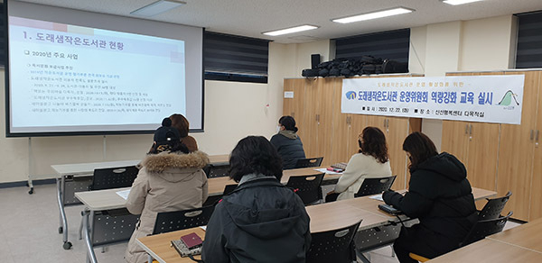 이날 교육에 참여한 위원들은 2020년 도래샘작은도서관 주요업무 실적을 공유하고 2021년 포스트코로나 시대에 대비한 작은도서관 운영 및 발전방안에 대해 다양한 의견을 나눴다.