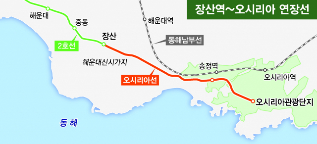 장산역에서 끝나는 부산도시철도 2호선을 오시리아관광단지 중심역까지 연장하고 노포~정관선을 건설하는 방안이 추진된다. 오륙도선도 오륙도 해맞이공원까지 연장된다. 부산시는 이런 계획을 포함한 도시철도망 구축계획 2차 변경안을 마련했다. 장기 관점에서 부산 곳곳을 도시철도로 촘촘히 엮는 계획이다.