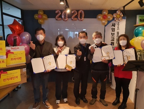 자활기금 지원을 받아 진행된 이번 보고회는 구청장 표창을 포함한 우수참여자 시상, 2020년 사업실적보고 영상상영, 자활센터 사업 참여자 경품 추첨 등의 순으로 코로나19로 인한 사회적 거리두기를 준수하여 온라인으로 송출하는 비대면 방식으로 진행되었다.