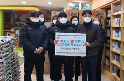 동근이숯불두마리치킨 본점(대표 이동근)은 28일 부산진구 부암1동행정복지센터(동장 차승호)를 방문해 이웃돕기 성품으로 라면 100상자, 백미 10kg 100포, 마스크 5,000장(환가액 720만 원)을 기탁했다.