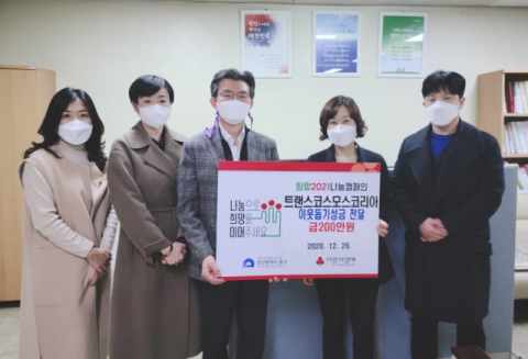 트랜스코스모스코리아(대표 권상철)는 29일 부산 중구청(구청장 최진봉)을 방문해, 코로나19로 어려움을 겪고 있는 이웃을 위해 직원들이 온(溫)택트 바자회를 개최해 마련한 수익금 200만원을 중구 관내 취약계층에 써달라며 기탁했다.