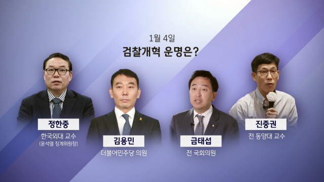 정한중 교수는 윤석열 검찰총장 징계위원회의 위원장 직무대리를 맡은 바 있고, 김용민 의원은 검찰개혁 강경론자로 최근에는 검찰청을 폐지하고 공소청을 신설하는 법안을 대표발의 하기도 했다. 금태섭 전 의원은 검찰개혁 문제로 당과 의견을 달리한 끝에 결국 탈당했다. 탈당 이후 본격적인 방송토론은 처음이다. 진중권 전 교수는 특히 조국 전 장관 사태 이후 정부 여당과 각을 세워온 인사이기도 하다. 법무장관과 검찰총장의 초유의 힘겨루기 사태로 시작돼 결국 공수처 출범으로 이어지는 상황 속에서 어떤 진단과 해법이 나올지 기대된다.