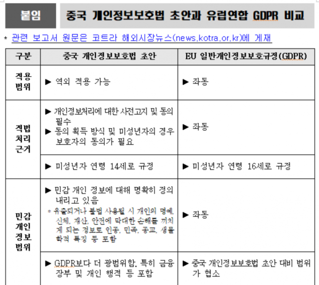 코트라 "유럽연합 GDPR과 유사하나 일부 조항은 더 엄격"