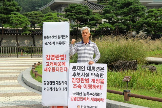 지난 2017년 김홍길 전국한우협회 회장의 1인시위 모습. 한우협회 제공