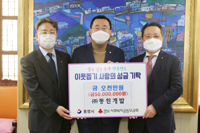 동원개발, 통영에 이웃돕기 성금 5000만 원 쾌척