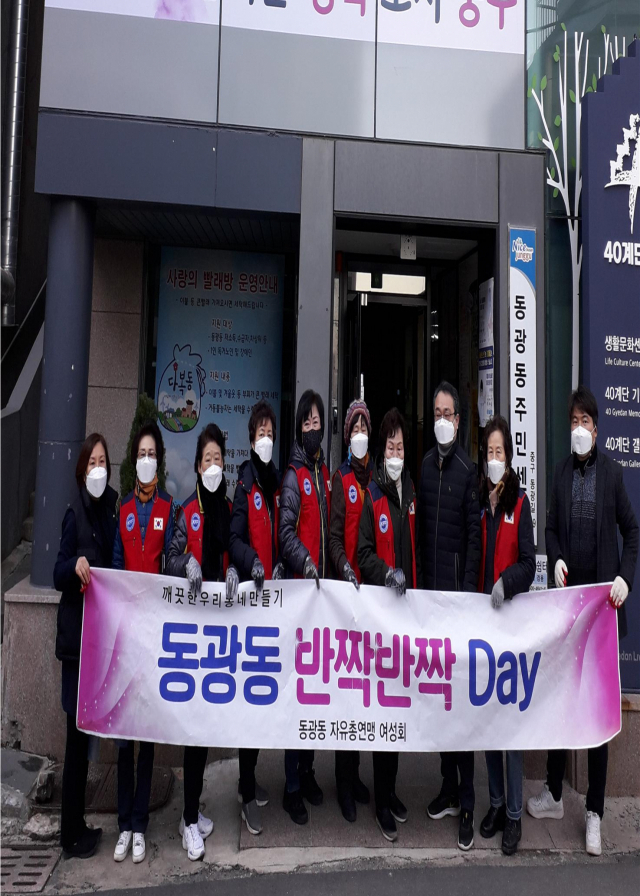 부산 중구 동광동 자유총연맹여성회(회장 김순옥)는 3일 2021년 우리의 고유 명절인 구정을 맞이해 깨끗한 동광동 만들기 일환으로 ‘동광동 반짝반짝 day’ 행사를 운영했다.