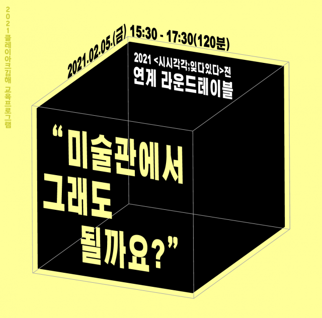 ‘시시각각;잊다있다’ 전시 연계 라운드테이블 참여 희망자는 클레이아크김해미술관 인스타그램 계정(https://www.instagram.com/clayarchmuseum)에서 행사 당일 참여 링크를 확인, 접속할 수 있다. 문의 055-340-7019.